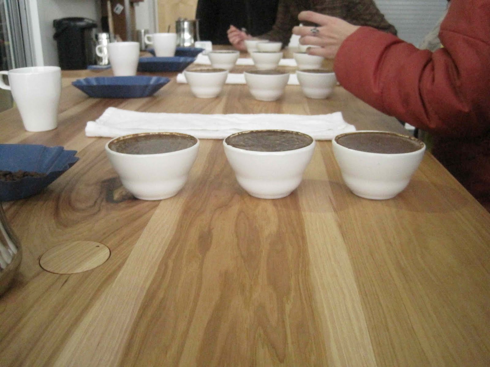 At the cupping, we tried three different cups of each of four beans. Thiswas for quality control: one of the three cups will be just right. (?!)